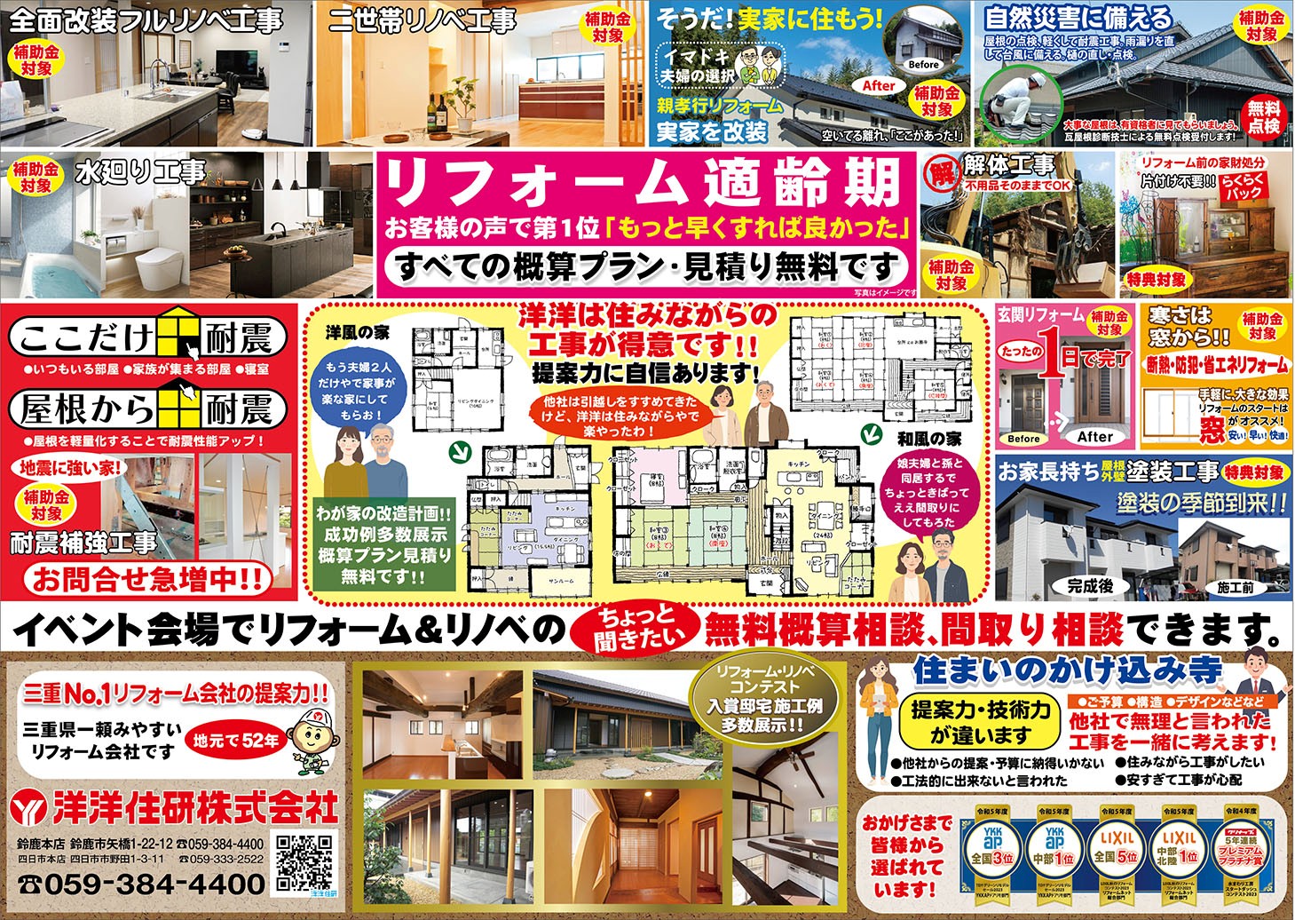 2026新春「リフォーム×耐震×相続 その夢できるに変えます!相談会」新春フェア1/6~2/1(土日も営業)洋洋住研鈴鹿本店体験型ショールームにて開催。