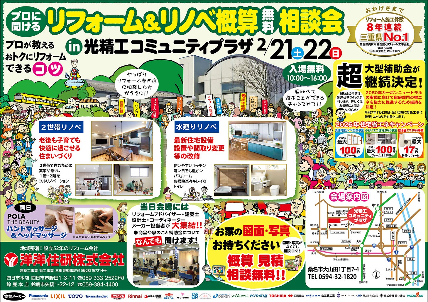 プロが教える、おトクにリフォームできるコツ!「プロに聞けるリフォーム&リノベ概算相談会」2/21・22の2日間、光精工コミュニティプラザ(桑名市大山田1丁目)にて開催!